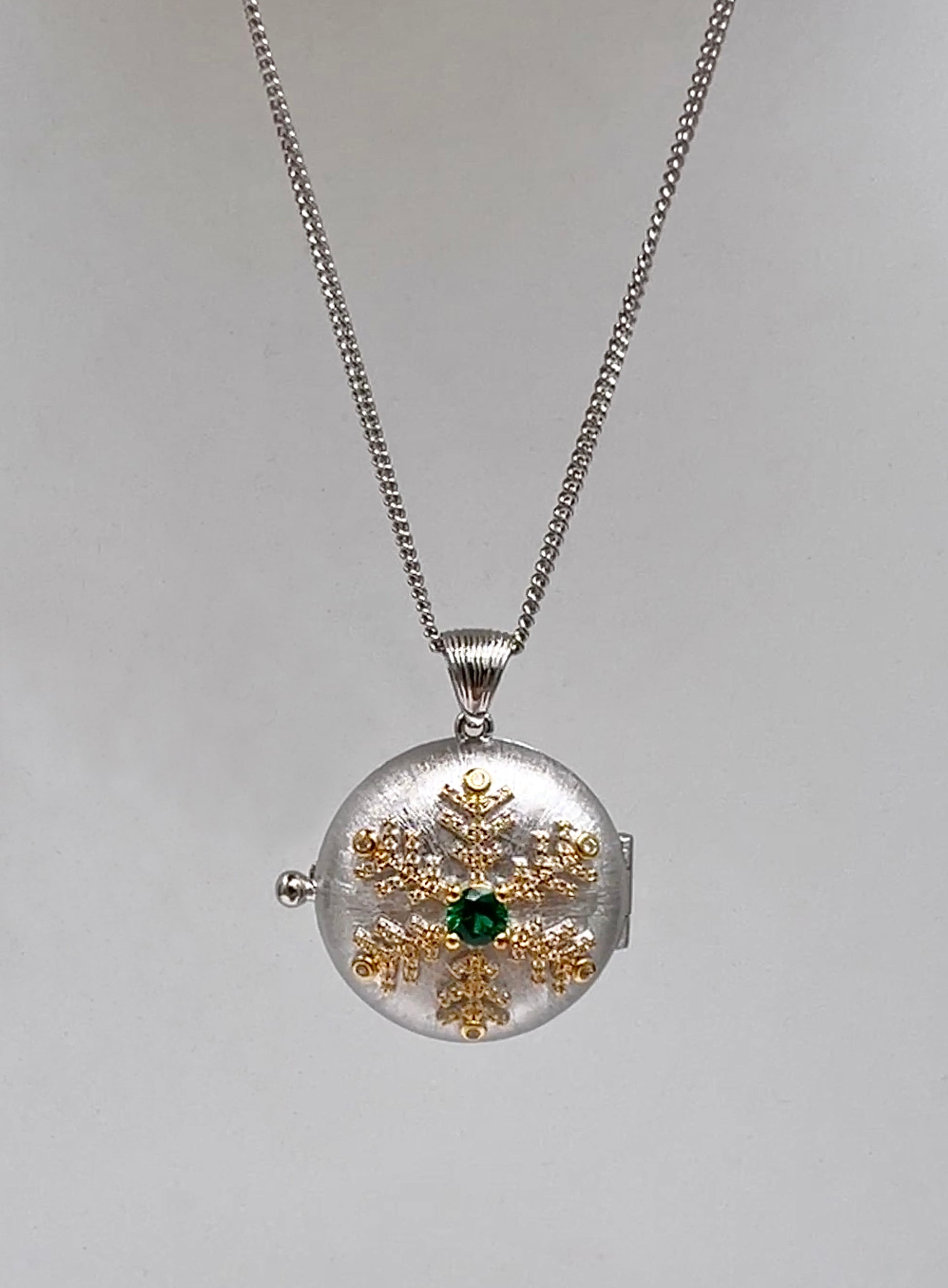 925 Silver Aromatherapy Locket Pendant With Green Stone Necklace