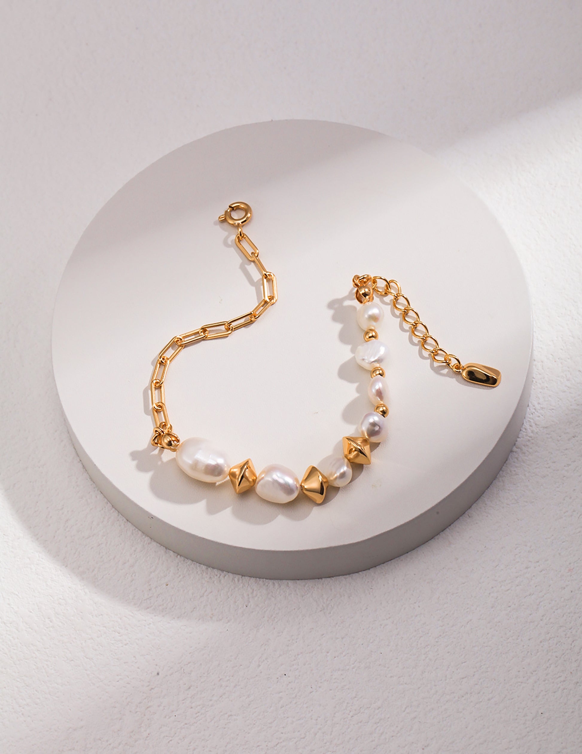 925 Silver Plated Gold With Irregular Freshwater Pearls Adjustable Bracelet