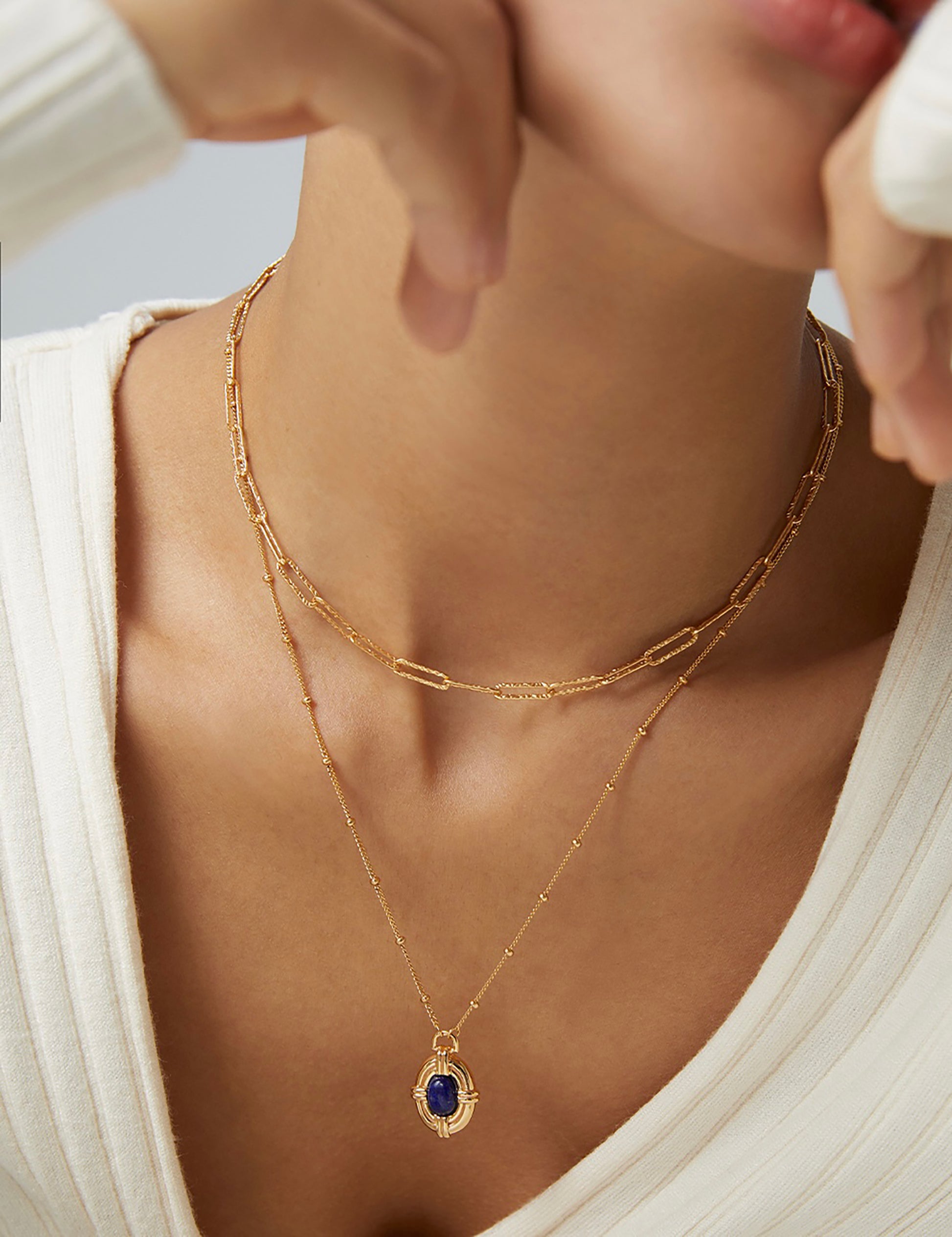 925 Silver Plated Gold With Lapis Stone Pendant Necklace