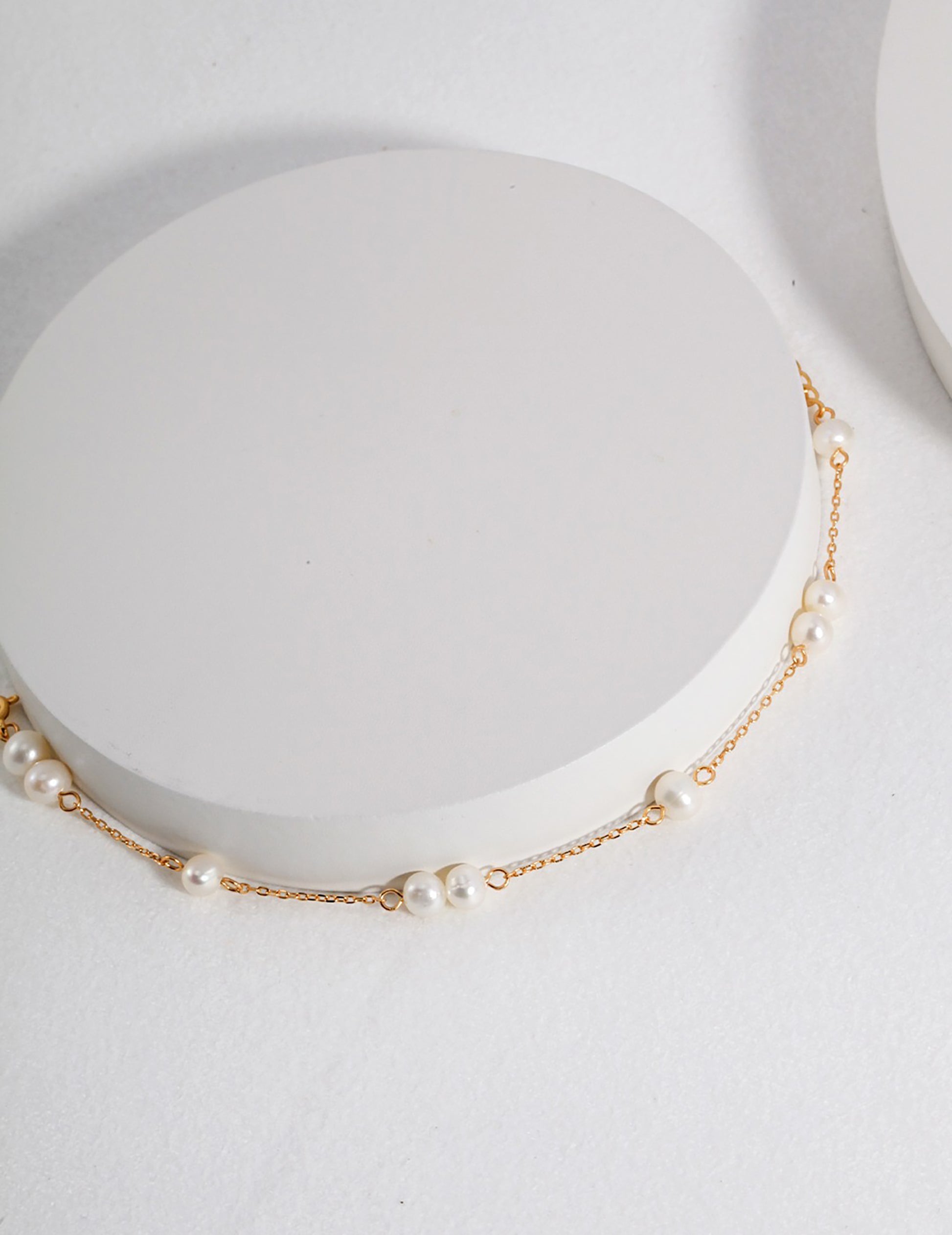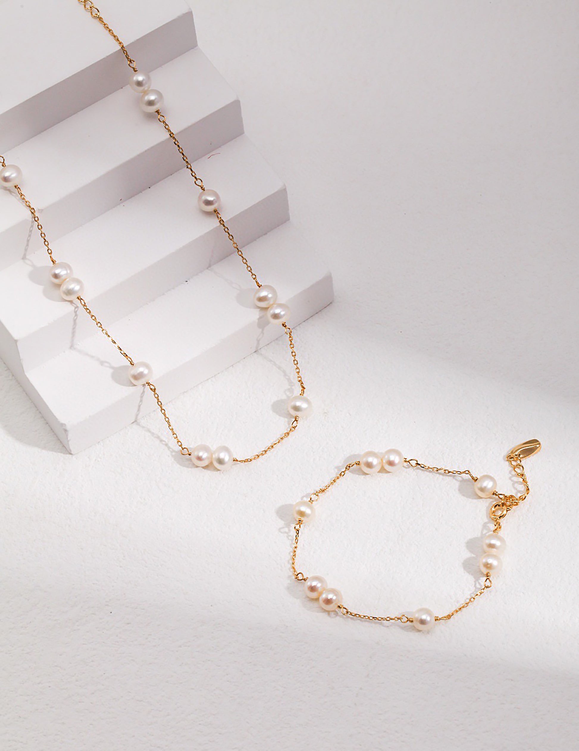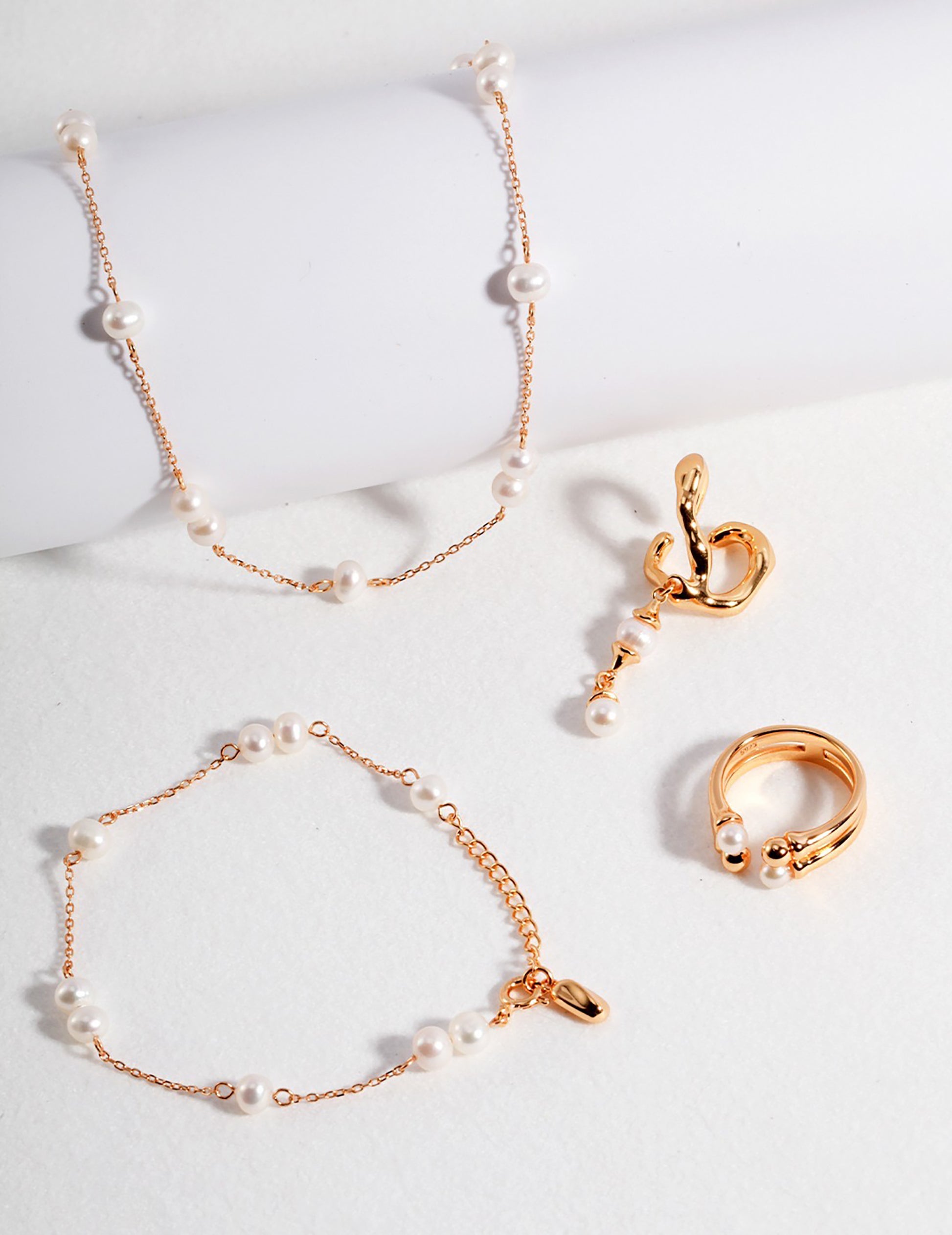 This bracelet is made of 925 sterling silver plated with 18K gold and high-quality freshwater pearls. The soft texture of sterling silver combines perfectly with the freshwater pearls, presenting an elegant and graceful style. . The simple and versatile style shows the elegance of women. This bracelet is a perfect gift for your loved ones, family, or friends, allowing them to wear it freely on any occasion. Whether it's for everyday wear or special occasions, this bracelet is your ideal choice.