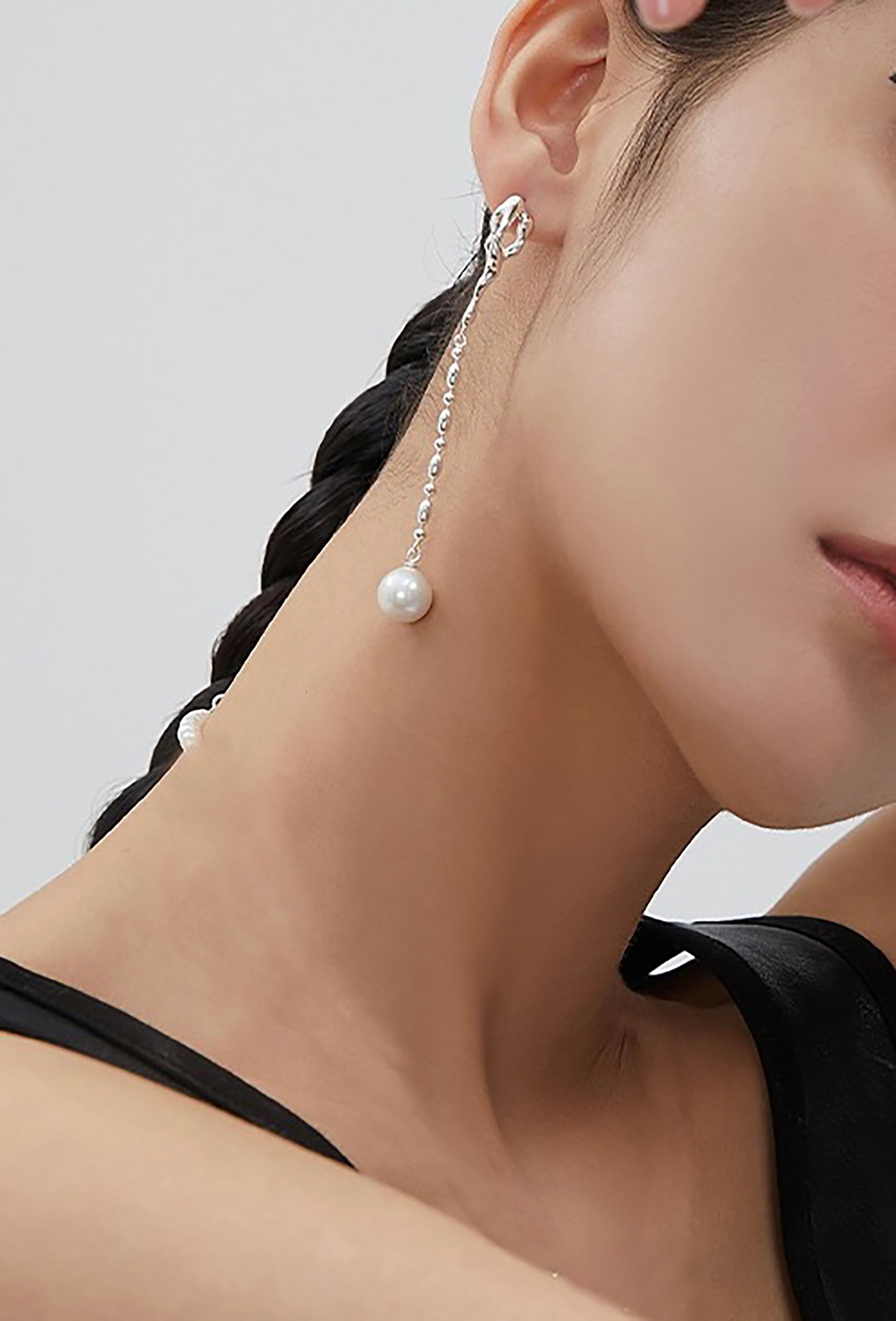 Asymmetry 925 Silver With Freshwater Pearls Drop Earrings