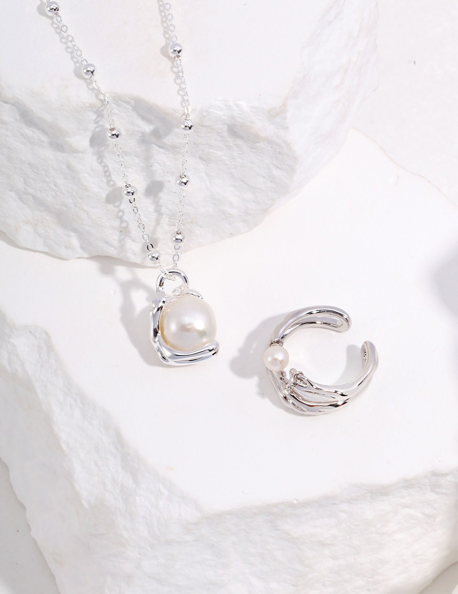 Baroque Pearl Pendant 925 Silver Plated Gold Necklace