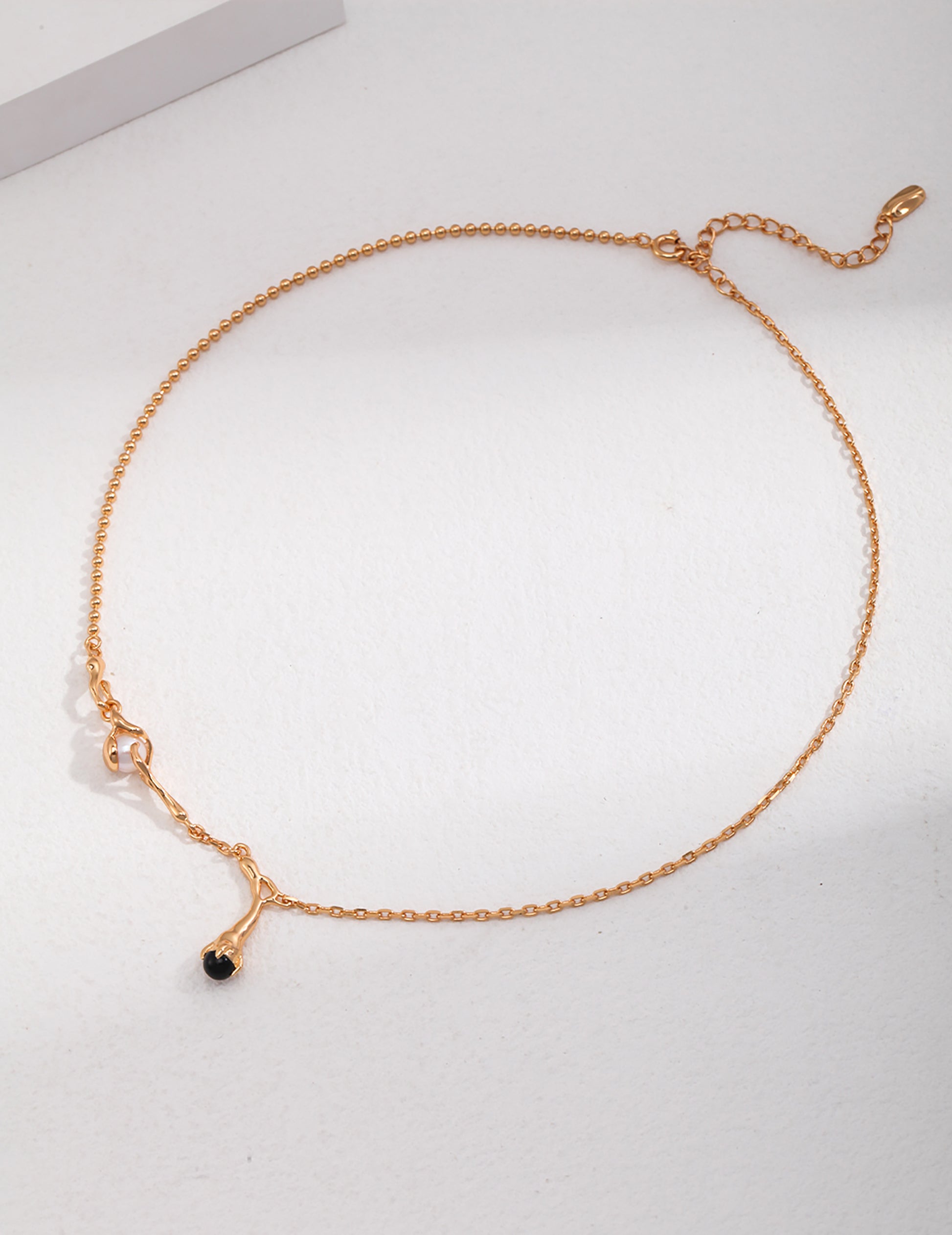 Black Agate Drop Pendant 925 Silver Plated Gold necklace