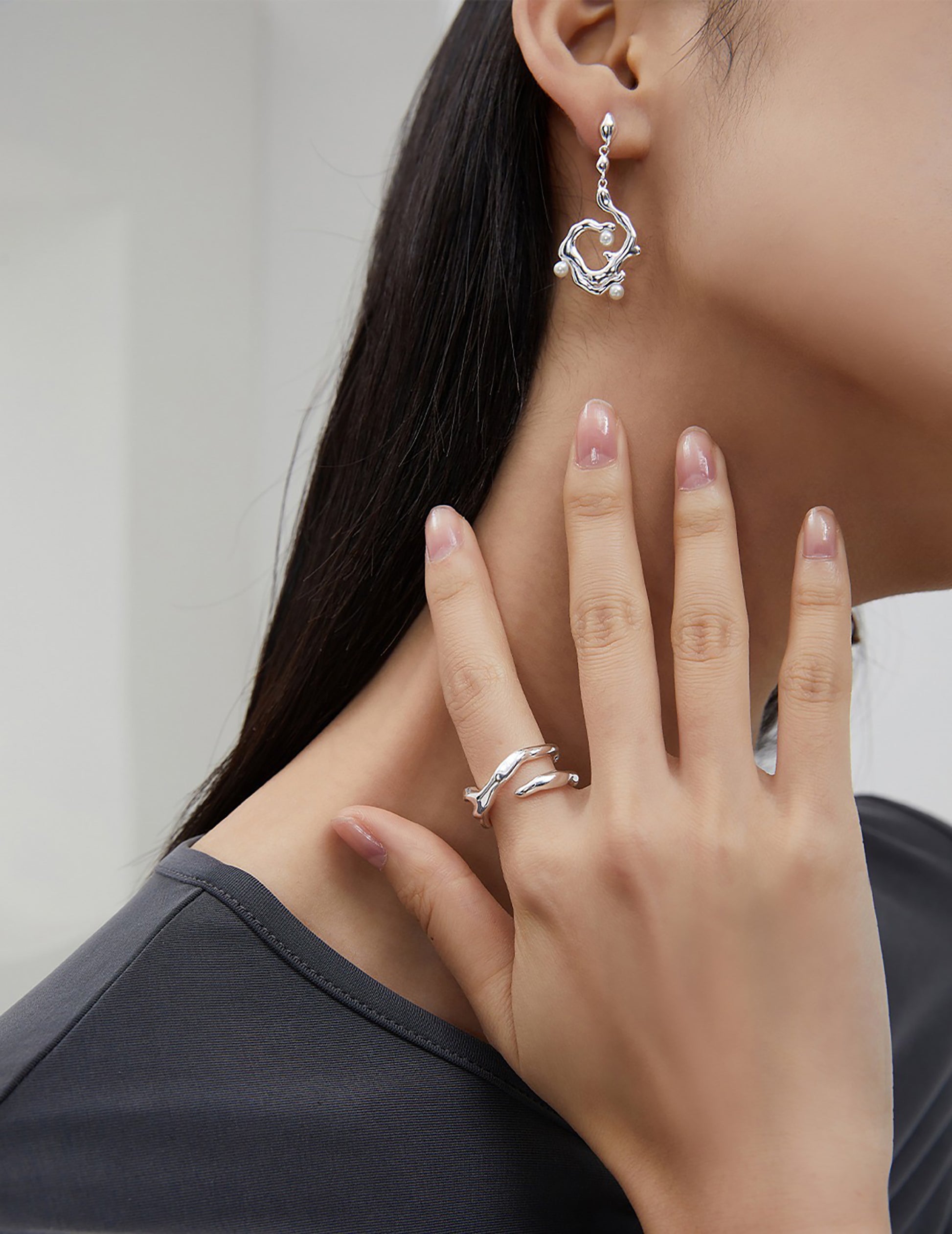 Curled Vine 925 Sterling Silver with Freshwater Pearl Earrings