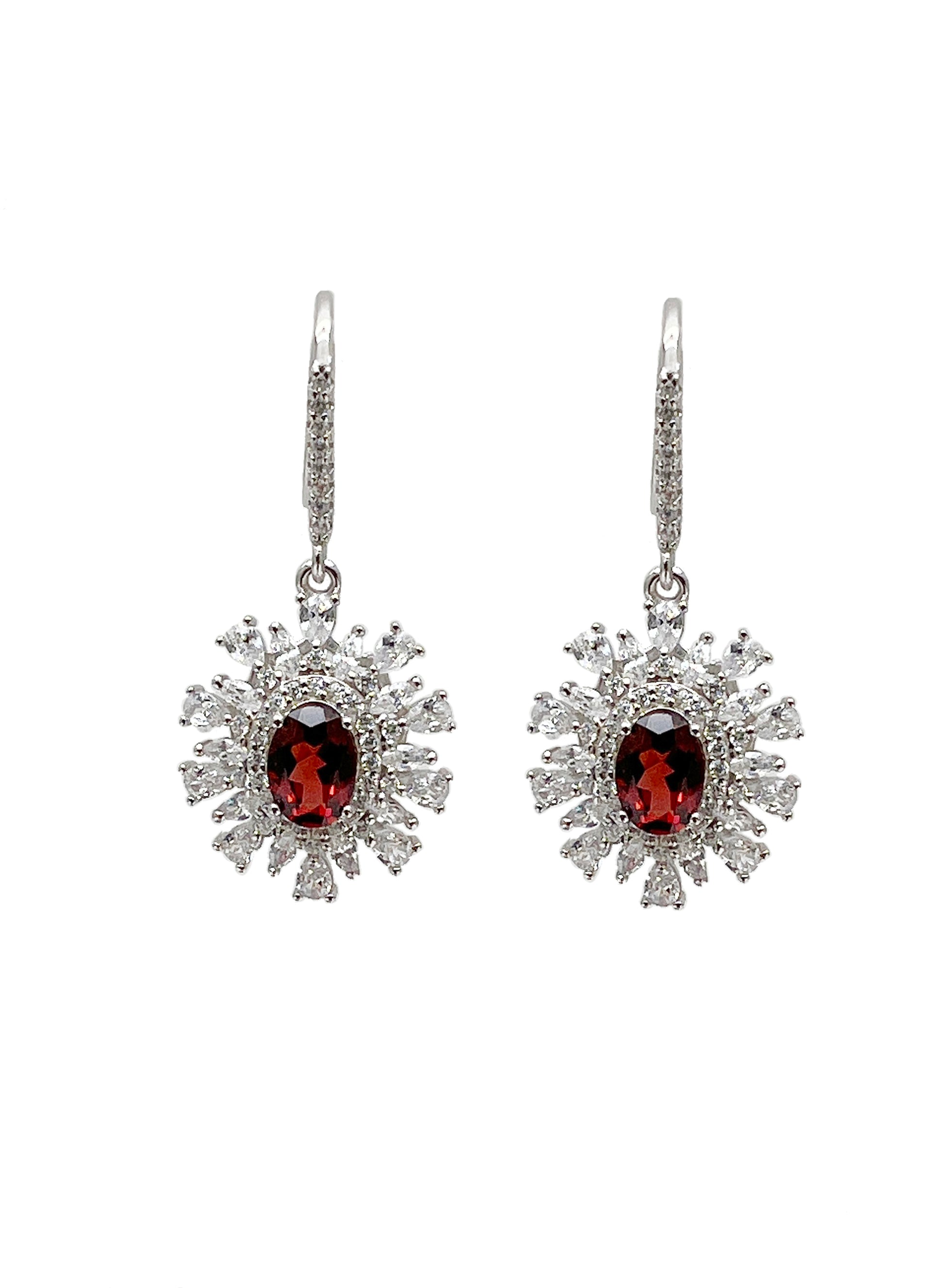 Introducing our Flower-Shaped 925 Sterling Silver Earrings with Garnet Stones - an exquisite and elegant addition to your jewelry collection. These earrings are expertly crafted from high-quality 925 sterling silver and feature a beautiful flower design that wraps around a stunning garnet stone. The rich red color of the garnet stone adds a pop of color and sophistication to any outfit, making these earrings perfect for any occasion.
