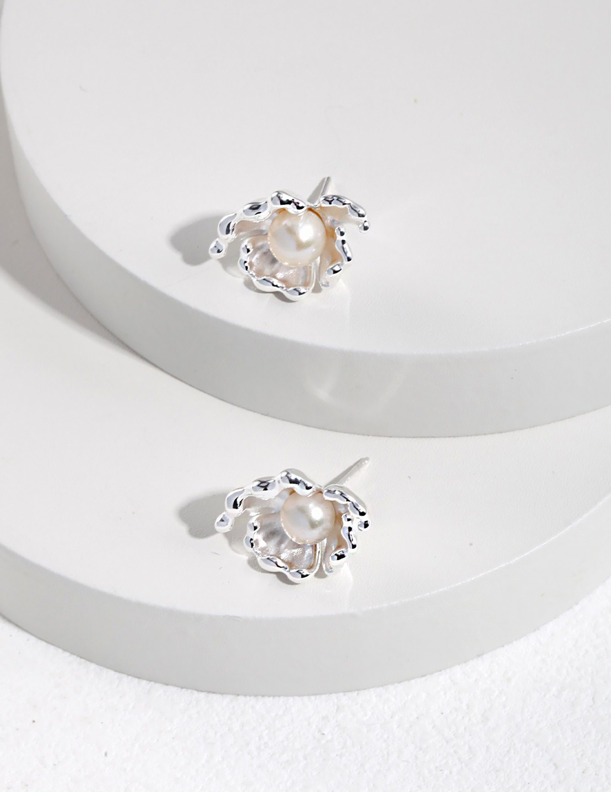Flower Shaped 925 Silver Plated Gold With Freshwater Pearls Stud Earrings