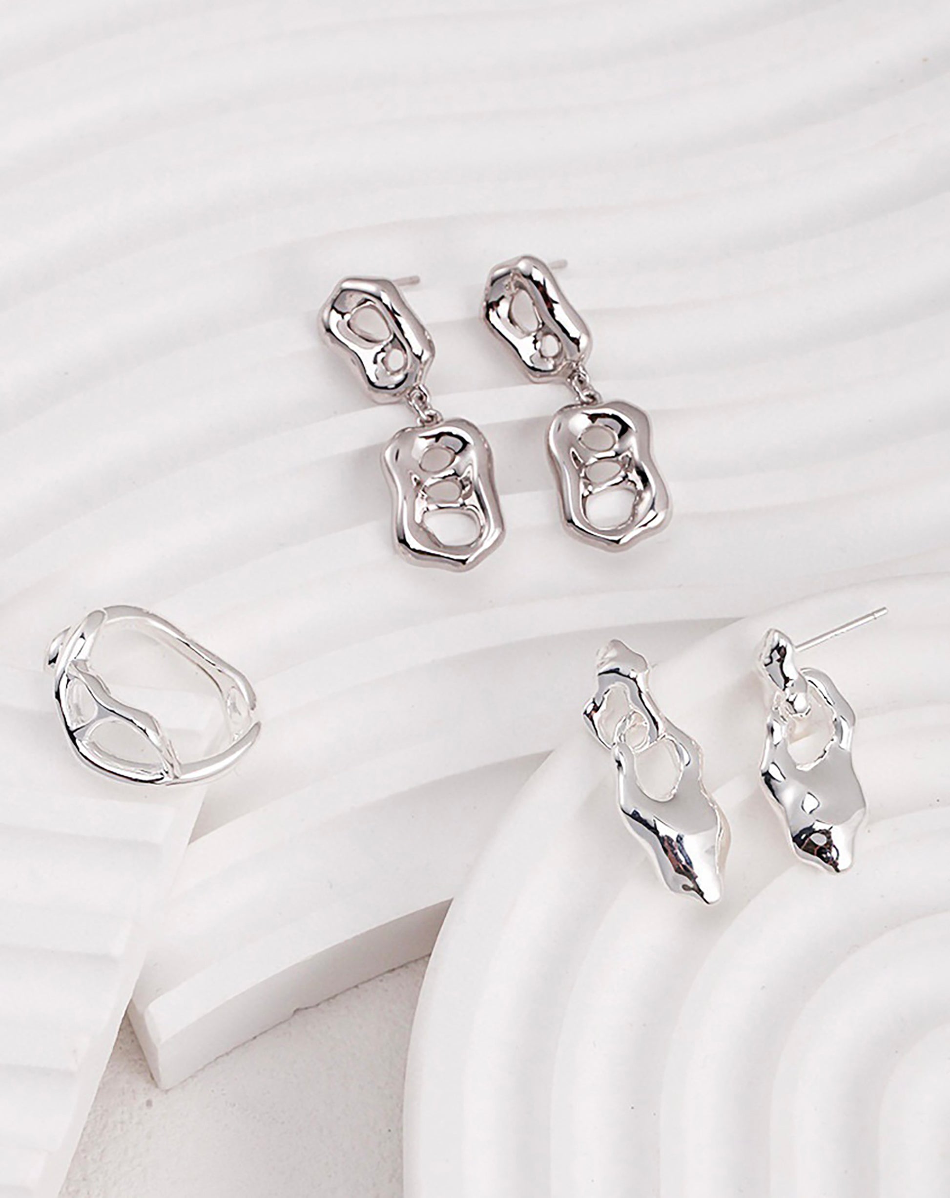 Introducing our 925 sterling silver earrings, inspired by the flowing movement of lava. The design captures the fluidity of lava and its unique shapes. The earrings are made with high-quality 925 sterling silver and boast a minimalist yet meaningful design, making them perfect for office wear, gifting, and everyday casual outfits. Elevate your style with these stunning and unique 925 sterling silver earrings, perfect for any occasion.