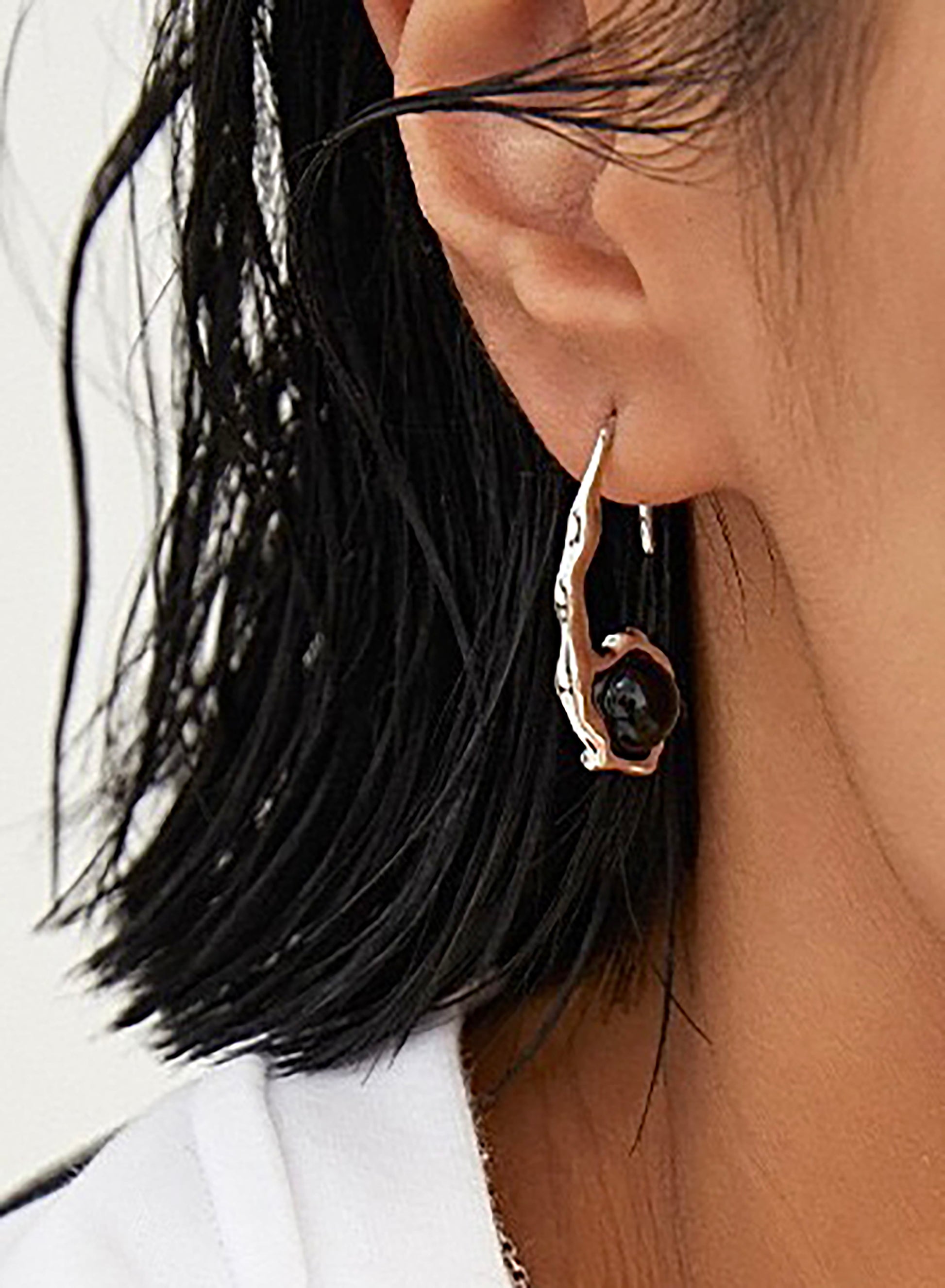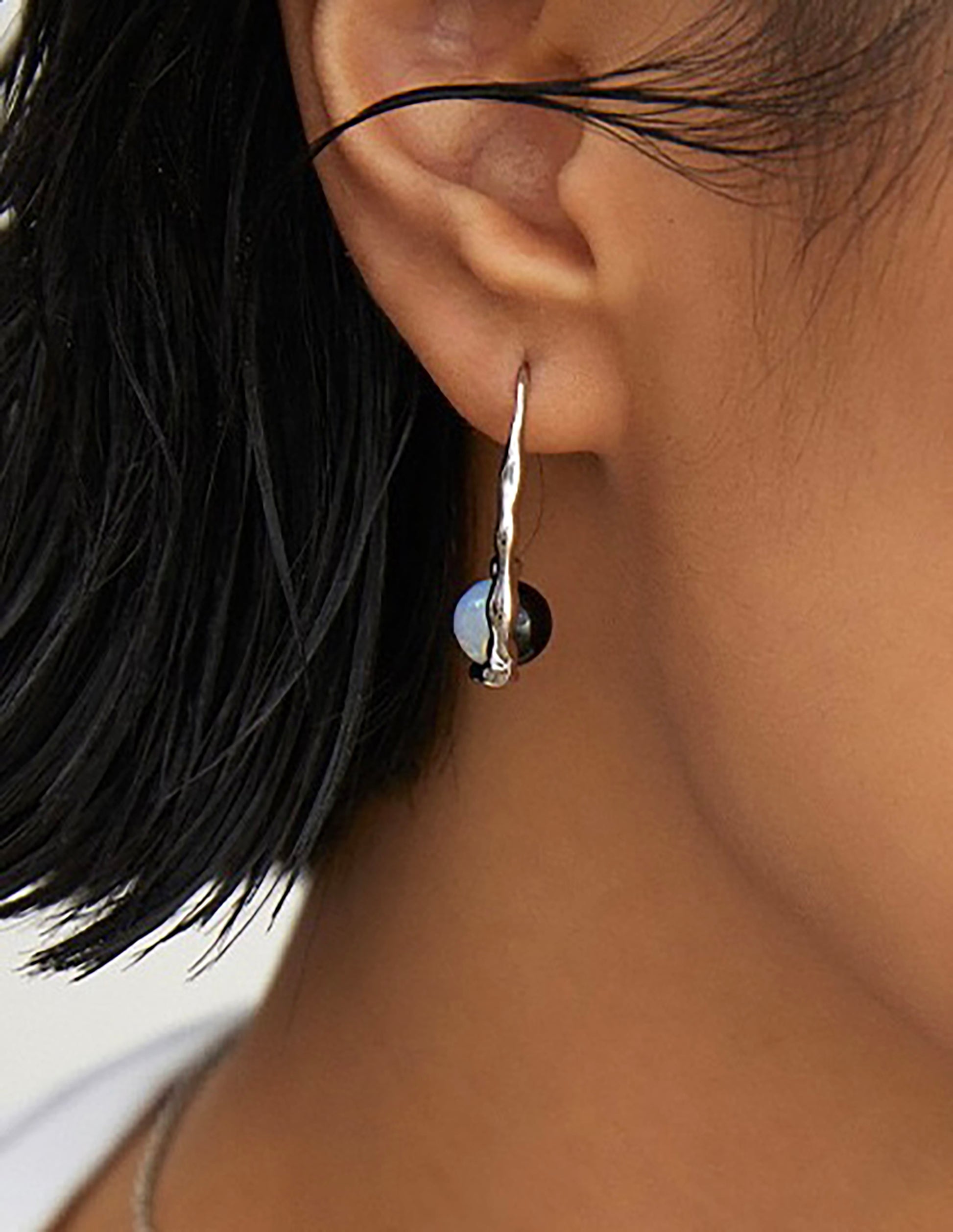 Introducing our unique and dynamic two-sided earrings, featuring a stunning opal on one side and a black agate on the other. Inspired by the fluidity of water, these earrings are a true work of art that stand out from the rest.