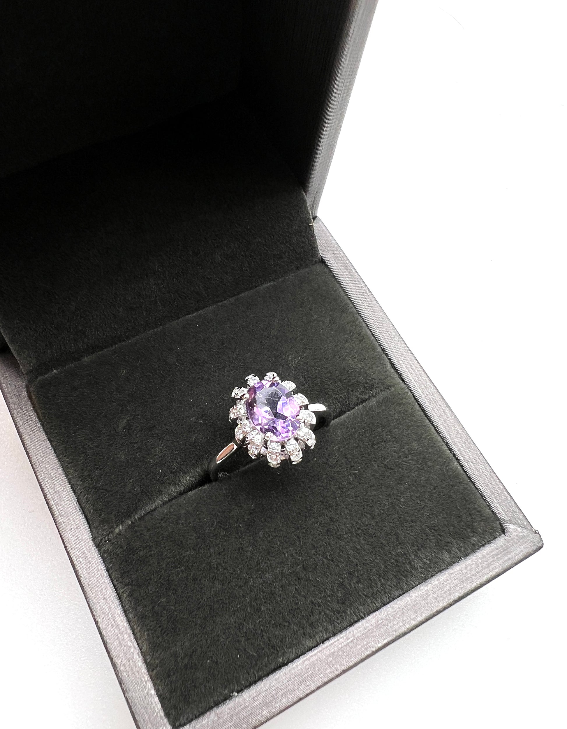 Crafted from high-quality 925 sterling silver, this ring features a stunning oval-shaped amethyst stone at its center. Amethyst is known for its beautiful violet color and is said to have calming and soothing energy, making it a popular gemstone for jewelry.