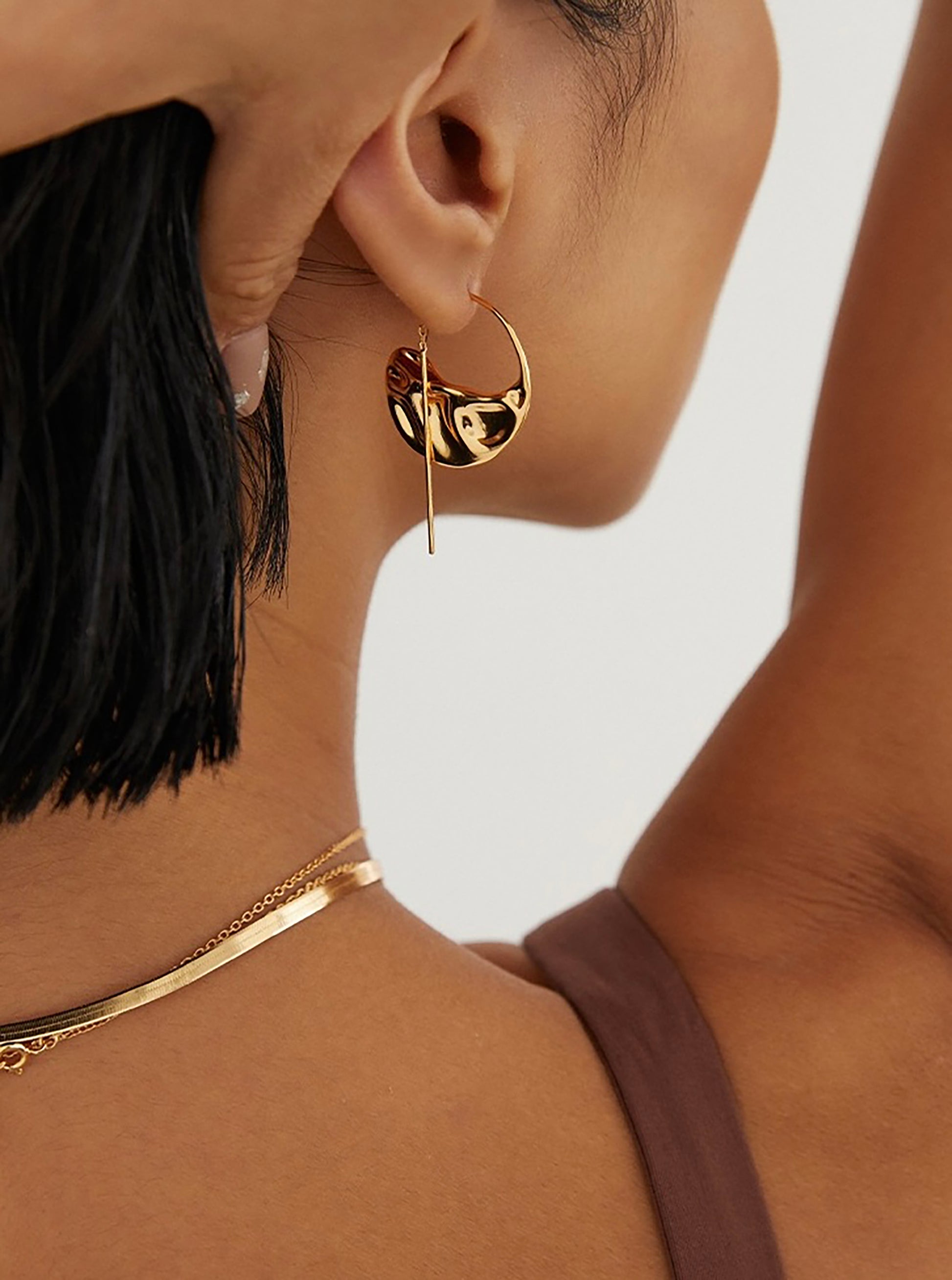 The design features a classic semicircle shape, which is both timeless and versatile. The earrings are lightweight and comfortable to wear, making them perfect for everyday use or special occasions.