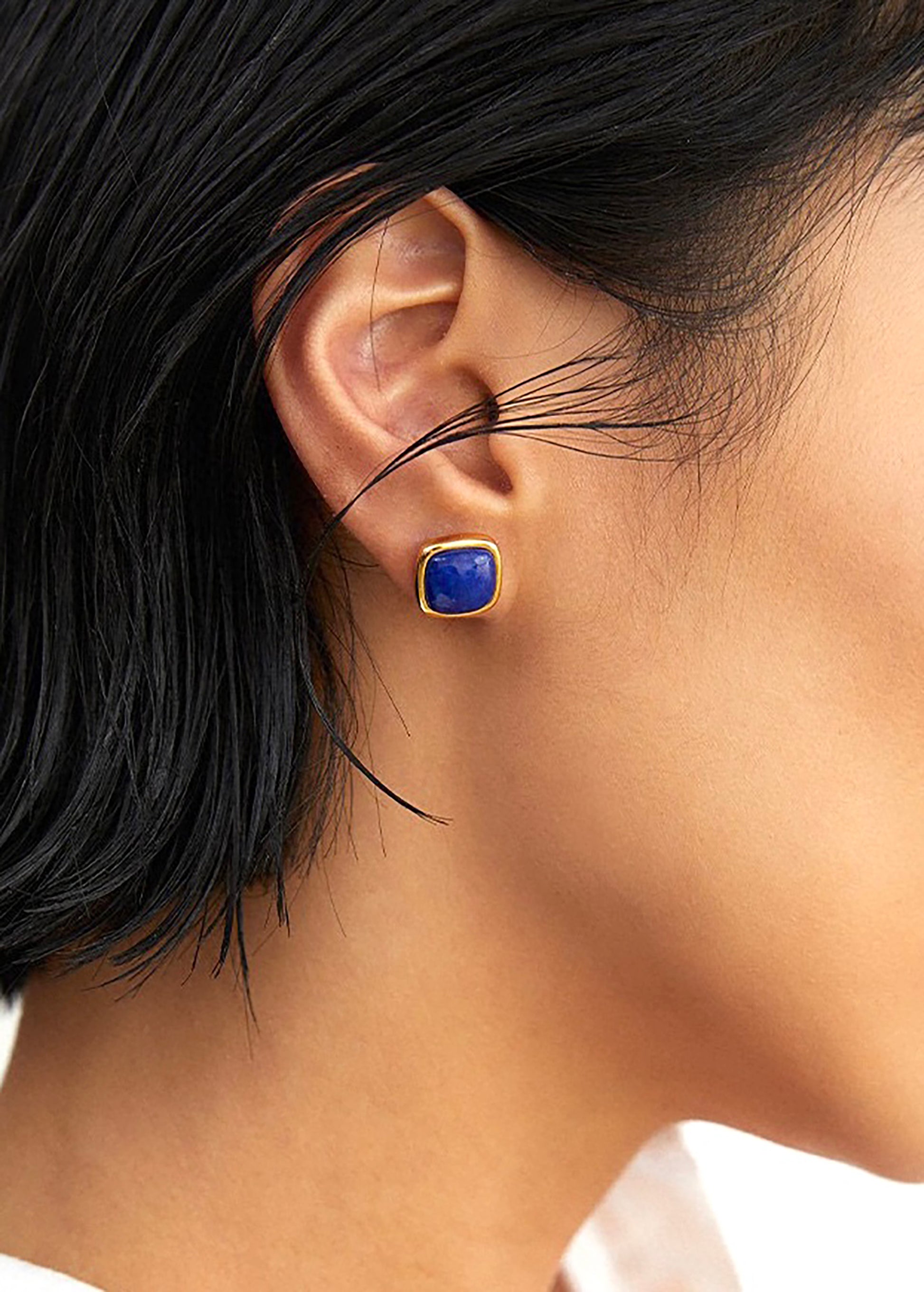 he square shape and gold-plated setting give these earrings a sleek and modern look that is perfect for any occasion. Their simple yet elegant design makes them the perfect addition to any outfit, whether you're dressing up for a special occasion or adding a touch of sophistication to your everyday look.