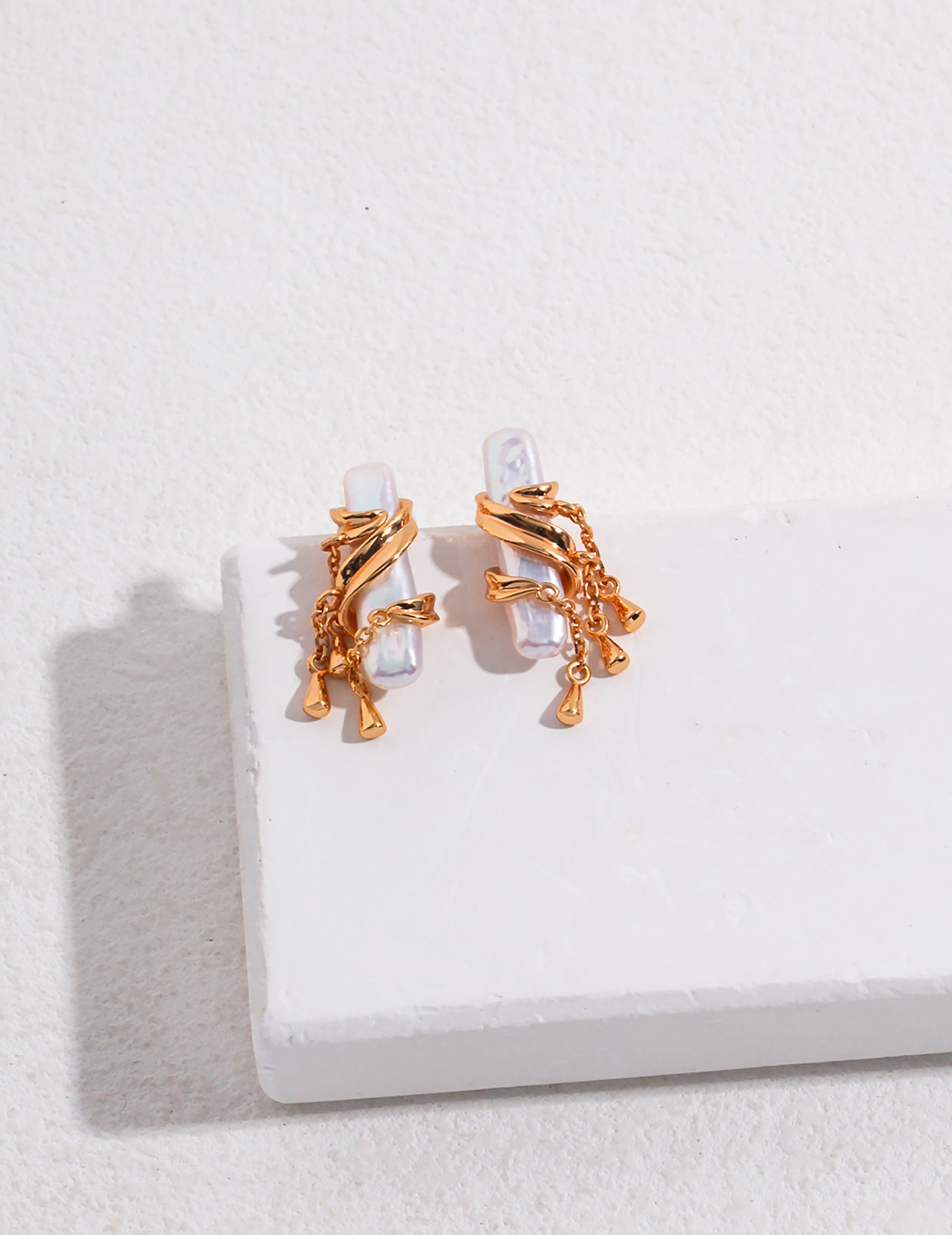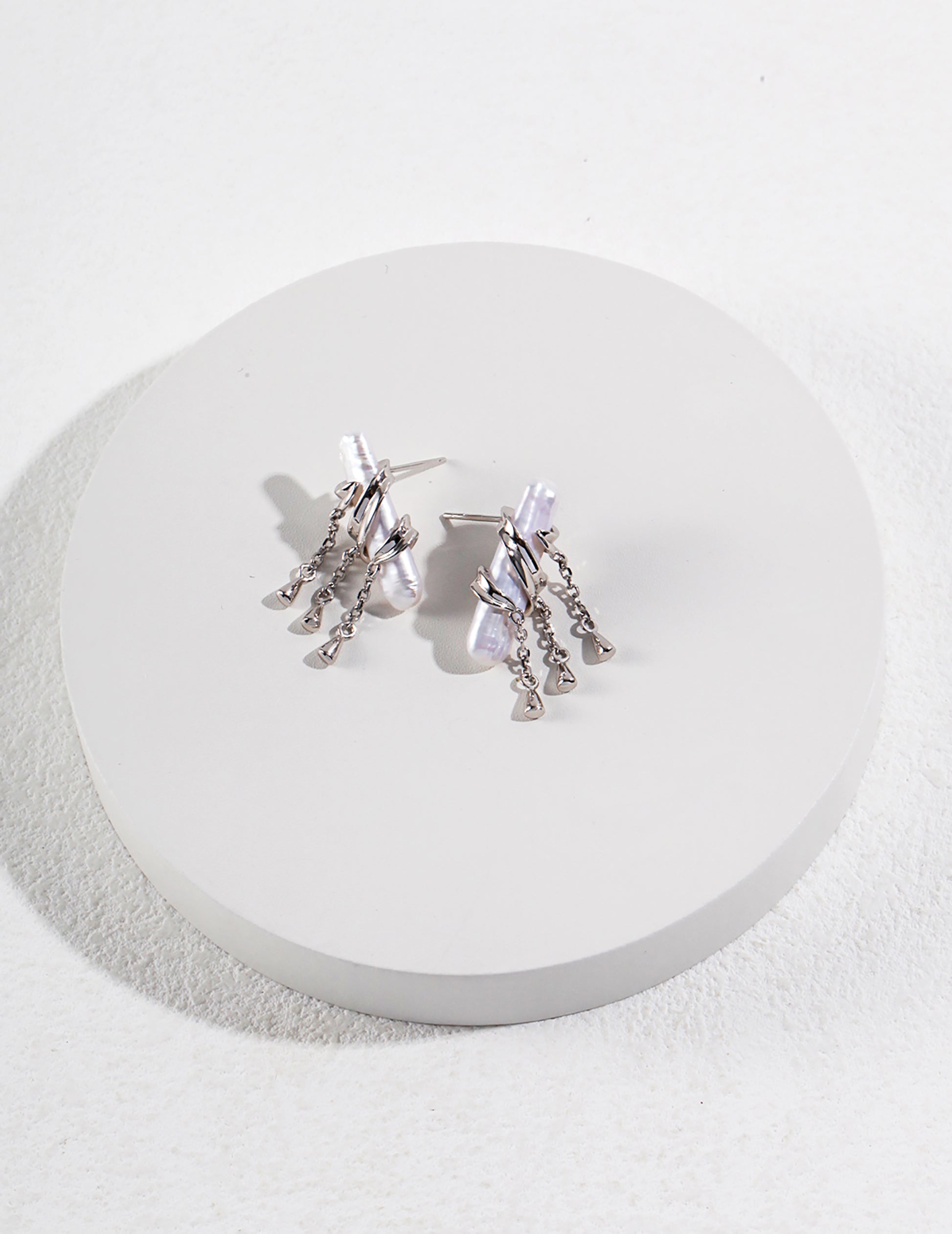 Stick Freshwater Pearls With Tassel 925 Silver Earrings