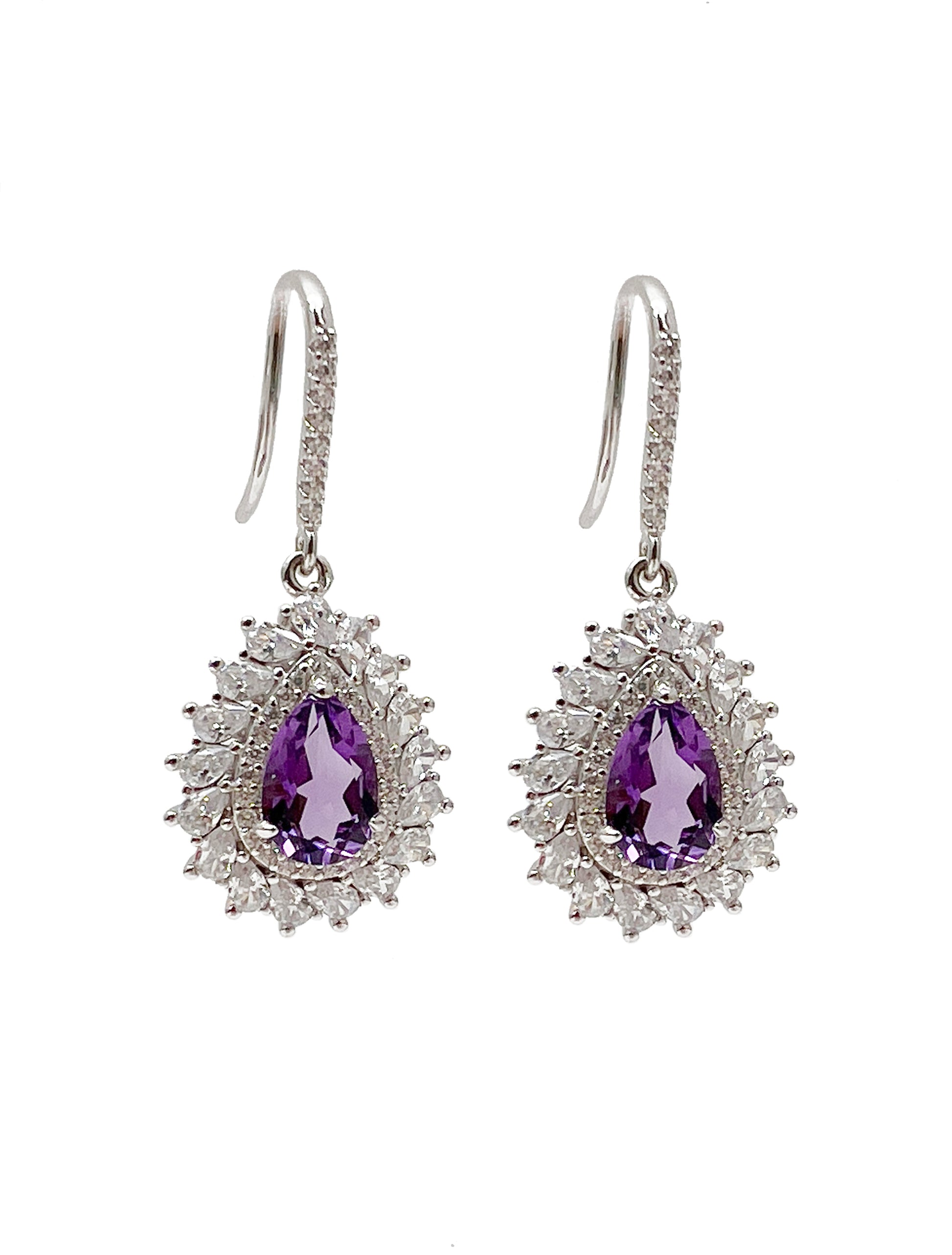 Introducing our stunning Teardrop Shaped 925 Sterling Silver with Amethyst Dangle Earrings - the perfect addition to your jewelry collection. These earrings are expertly crafted from high-quality 925 sterling silver and feature a beautiful teardrop shape that dangles elegantly from your ears.