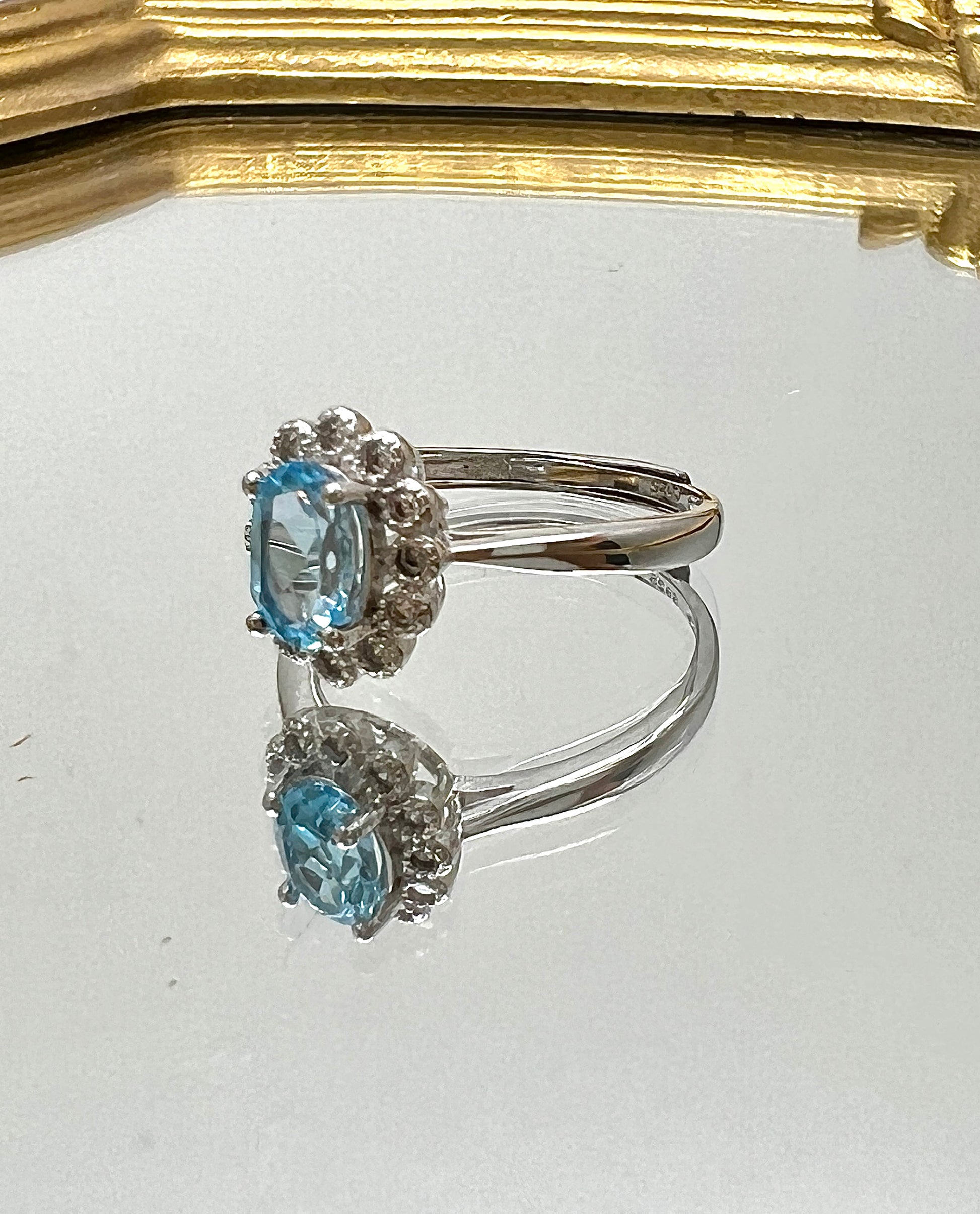The ring is expertly crafted from high-quality materials, with a gorgeous blue topaz stone at the center. The stone is cut in a big, square shape, reminiscent of the famous engagement ring worn by Princess Diana. The stunning ocean blue color of the stone is both regal and soothing, making this ring the perfect accessory for any occasion.