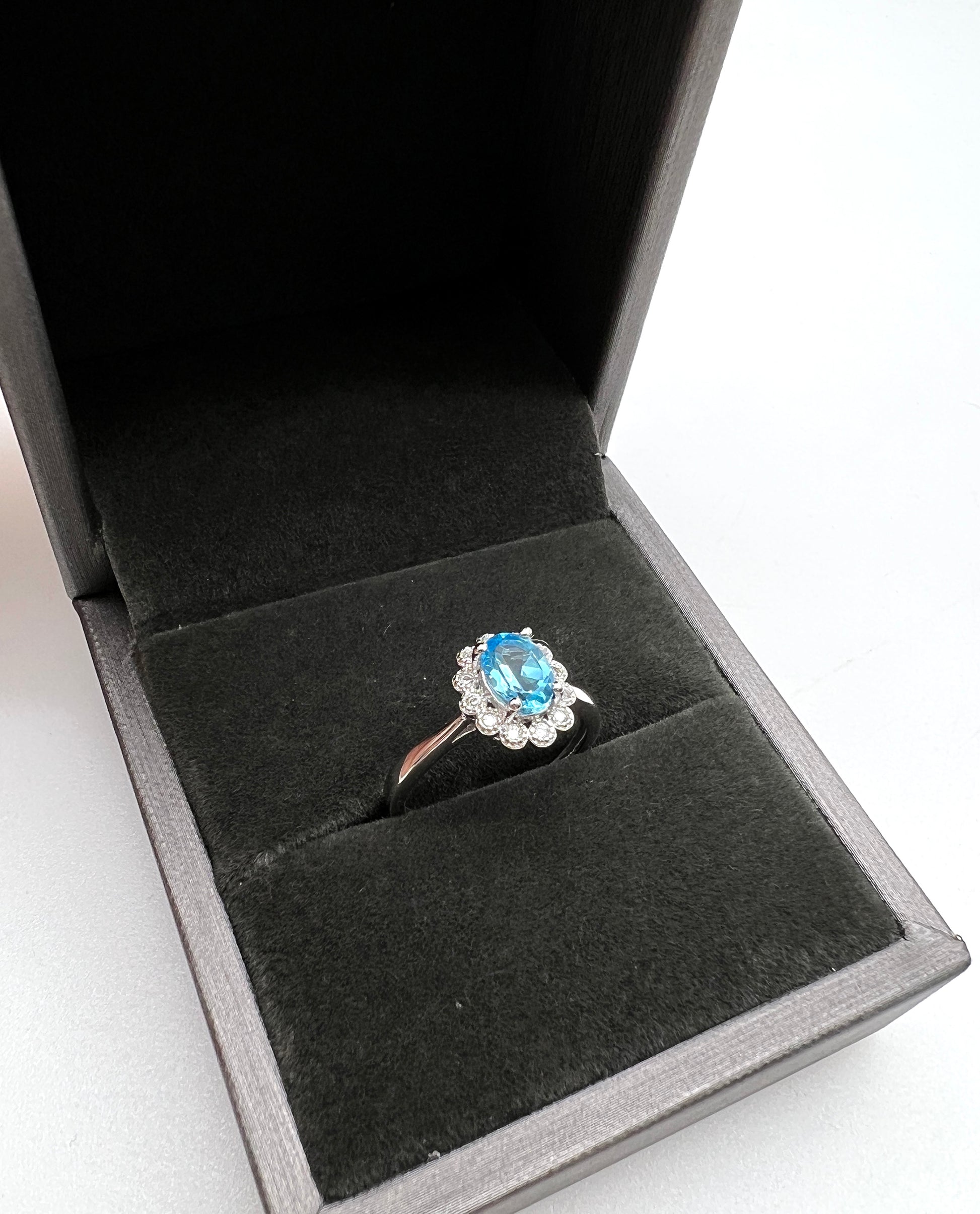 Introducing our Blue Topaz Stone Big Princess Diana Ring - a stunning piece of jewelry that captures the elegance and sophistication of the late Princess Diana.