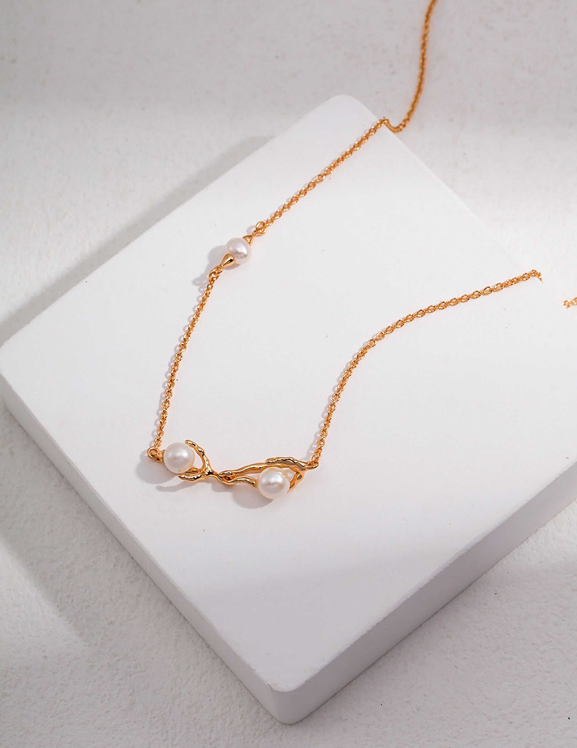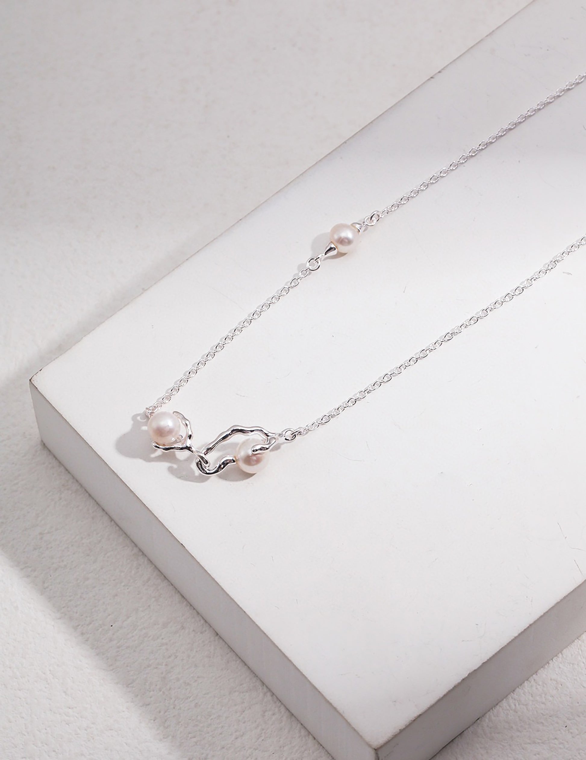 Vine Shaped 925 Sterling Silver With Pearls Necklace