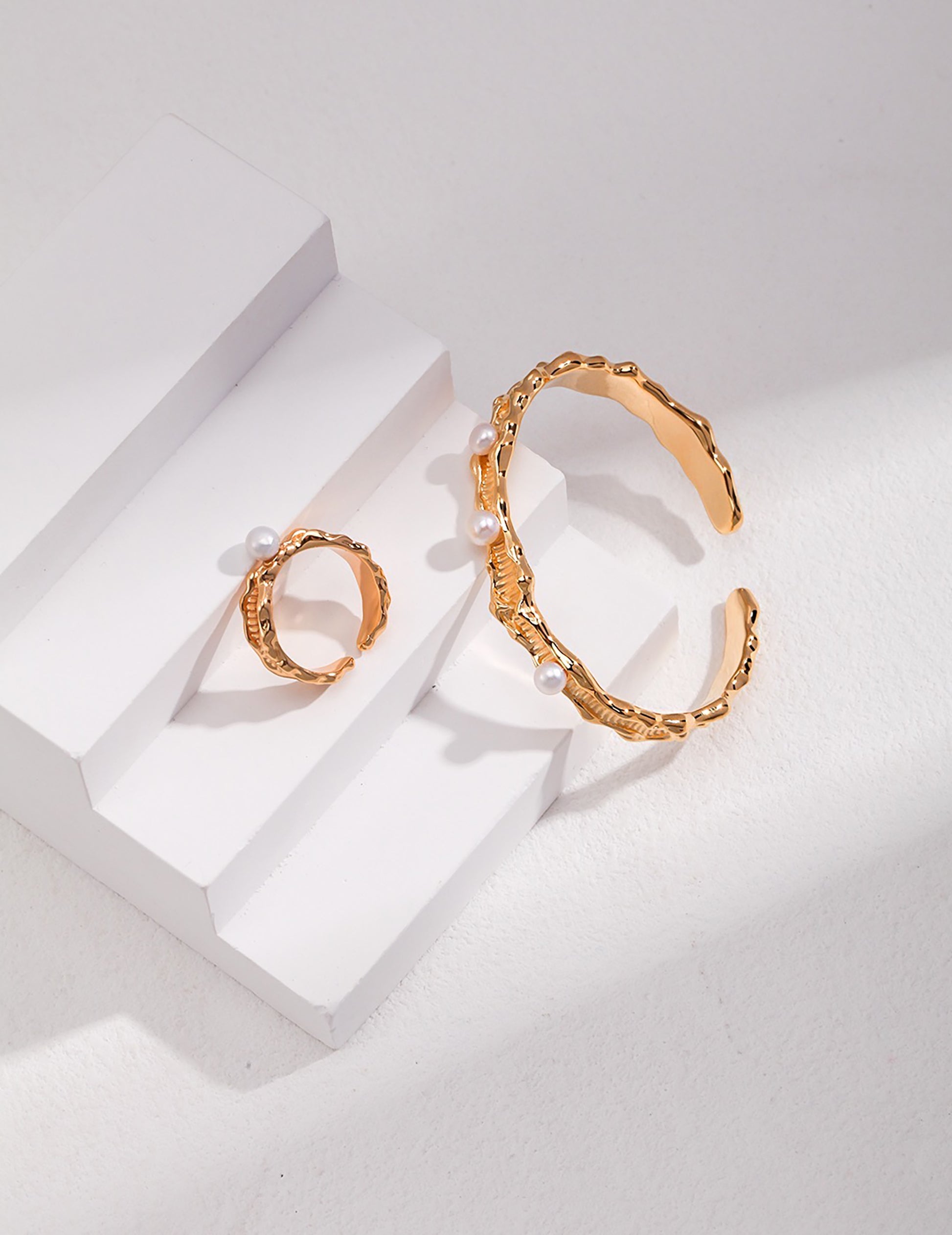 Introducing our stunning open bracelet, featuring a luminous pearl set in pure 925 sterling silver plated with 18k gold. Inspired by the beauty of the ocean, this bracelet captures the essence of the sea with its wave-like metal band and pearl centerpiece, reminiscent of a moonlit night on the water. This bracelet is perfect for adding a touch of romance and elegance to any outfit. The combination of the pearl and wave-like metal band creates a sense of calm and tranquility, reminiscent of the beauty of the ocean.
